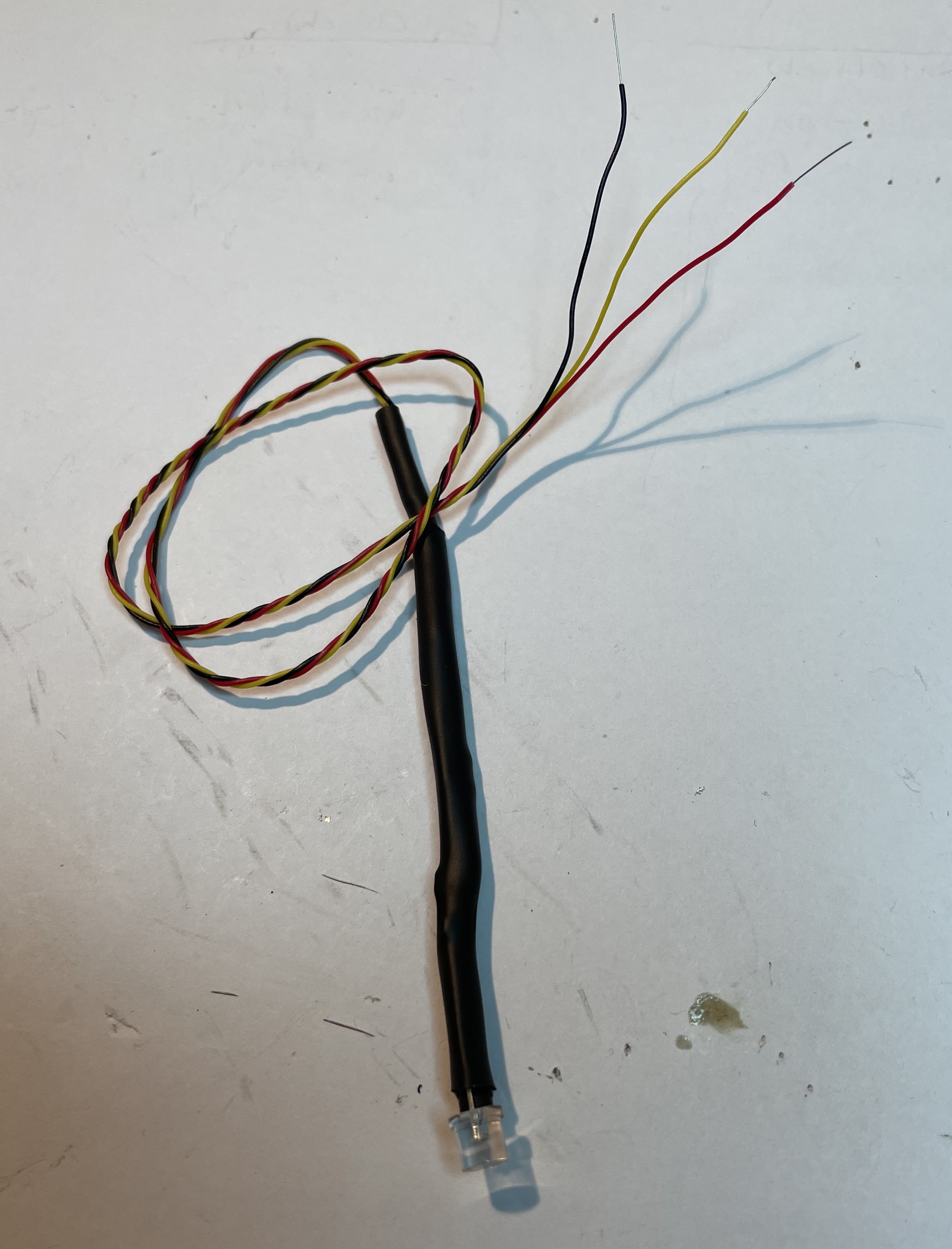 - See Figure 4: Slip a shorter piece of the next-larger-diameter heat-shrink tubing over all three wires, and slide it up against the phototransistor, and shrink it with a heat source.